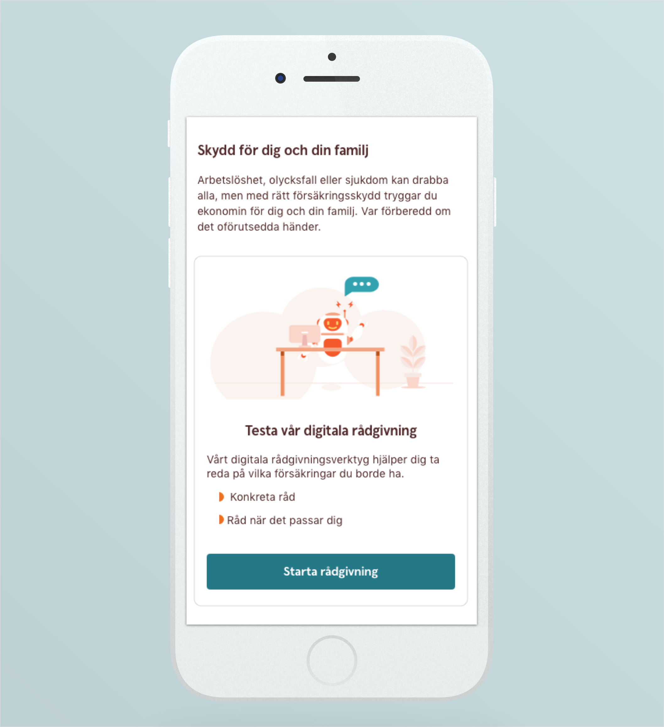 My responsibility was to shape the digital experience of our personal insurance products. Parallell to this I was shaping the holistic experience of related products which included focus on the insurance advisory journey.
